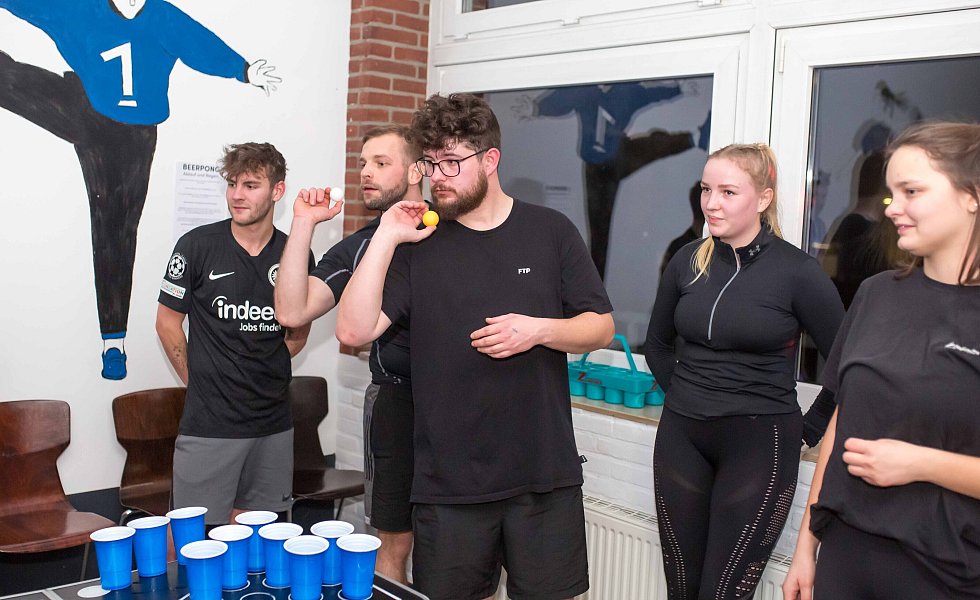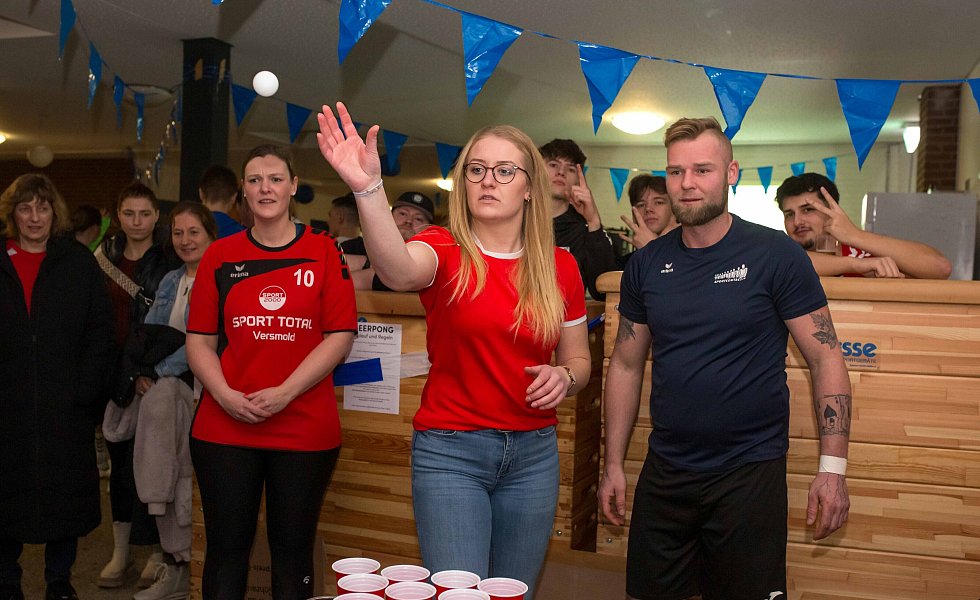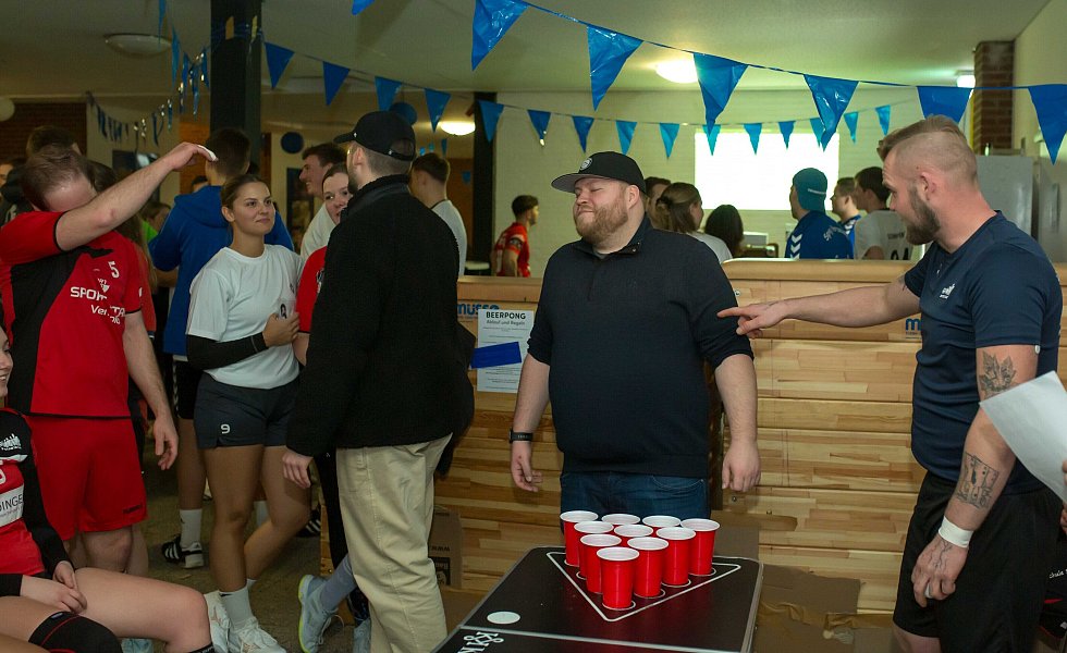 Dabei mussten die Teams in diesem Jahr nicht nur auf dem Feld ihr Können unter Beweis stellen. Denn nach den regulären Matches baten die Organisatoren um Niklas Reinker und Sören Veips zum Beerpong-Tisch. Hier wurde nach strengen Regeln ein Zusatzpunkt ausgespielt. In den Bechern befand sich übrigens Wasser, statt Bier, wie es der Name vermuten lässt.