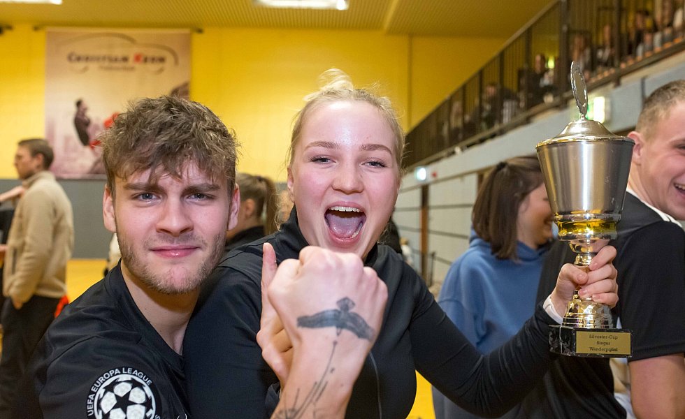 Allerdings kamen in diesem Jahr nicht so viele wie bei der vorherigen Auflage. Das lag wohl zum einen am Termin. Der Wintercup fiel zeitgleich mit dem zweiten Vorrundentag des „Haller-Kreisblatt-Cups“. Das Fußballturnier fand in der Sparkassen-Arena statt und zieht traditionell viele Sportfans in die Halle. „Dadurch konnten einige Teams nicht bei uns melden“, analysierte Niklas Reinker. „Trotzdem hatten viele Bock, bei uns mitzumachen.“ Er kündigte bereits eine Fortsetzung für das kommende Jahr an: „Einige Ideen haben wir schon und schauen, ob alles umsetzbar wird.“