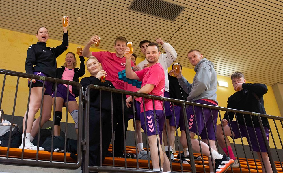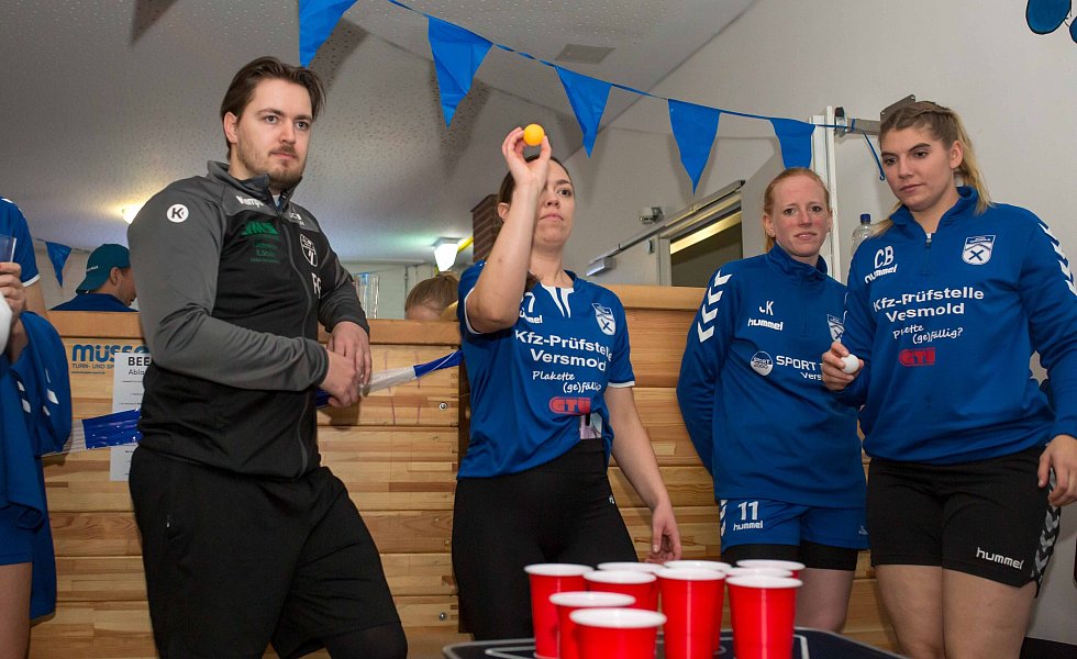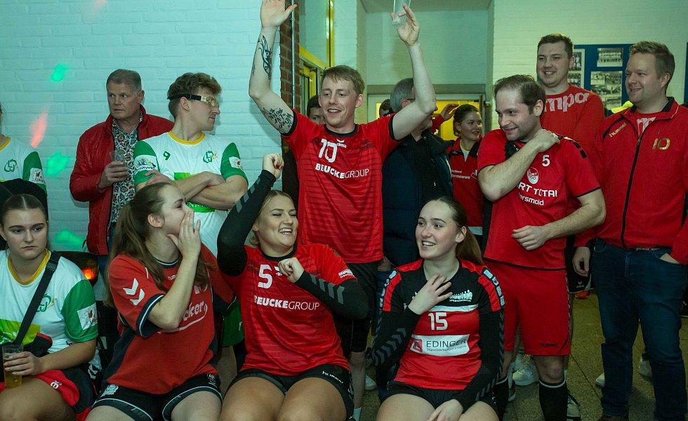 Ähnlich ging es auch den „Schnapsballern“. Der Kern des Teams bildeten Spieler, die einst bei der Spvg. Versmold und der JSG Bockhorst/Dissen-Versmold das Handballspielen erlernten. Unter ihnen war zum Beispiel Tom Kalter, der bei Regionalligist SF Loxten zum Ball greift. Maurice Dingerwerth spielt für die HSG Werther/Borgholzhausen und Patrick Gerloff hütet beim TV Isselhorst das Tor. Seiner Favoriten-Rolle konnte der einst so talentierte Nachwuchs allerdings nicht gerecht werden. Die „Schnapsballer“ landeten auf dem fünften Rang.