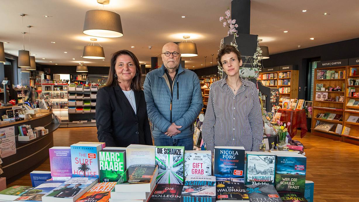 Olivera Roesler-Lepkij (l.) ist das neue Gesicht der Buchhandlung Krüger. Ekkehard Risken und Christina Risken unterstützen weiterhin – aber nicht mehr an vorderster Stelle. | © Andre Schneider