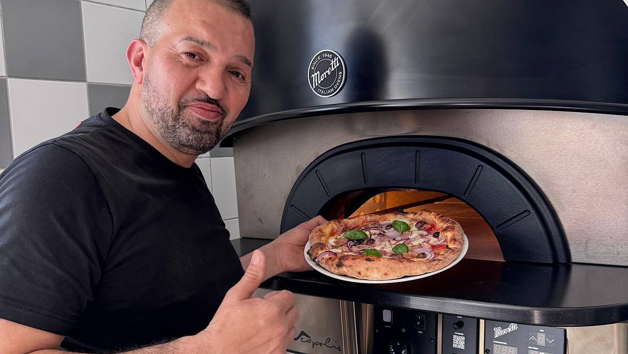 Roberto Marciano am neuen Steinofen, in dem er die neapolitanische Pizza backt. Zusammen mit seiner Familie betreibt er neuerdings das Restaurant am Versmolder Tennispark. | © Familie Marciano
