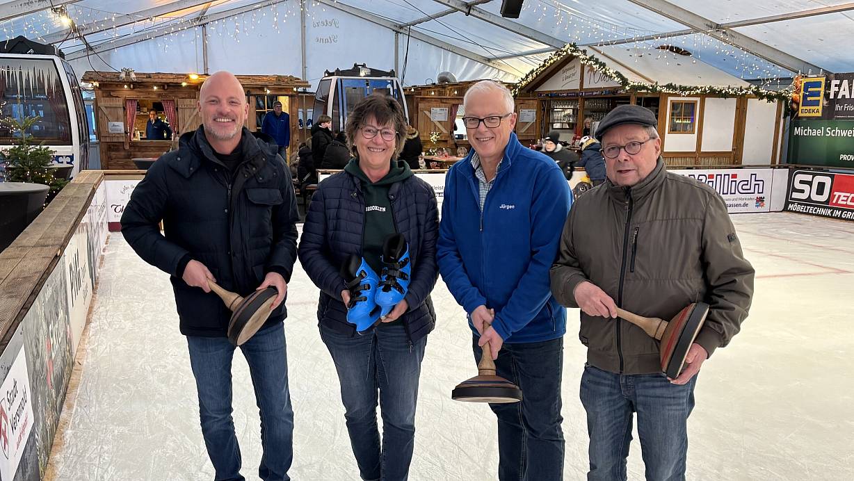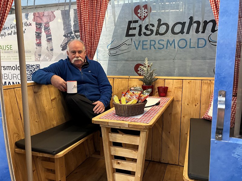 Einen Tag danach wird in der Innenstadt vom Verein „Versmold verzaubert“ die Eiszeit eingeläutet. Bereits am Dienstagnachmittag gab es zum Auftakt freies Schlittschuhlaufen - zum Nulltarif. Abends folgte die offizielle Eröffnung mit vielen geladenen Gästen. Die Fläche zum Schlittschuhlaufen und Eisstockschießen umfasst 253 Quadratmeter. Drumherum verwandelt der Verein die überdachte „Eishalle“ in eine kleine Winterwelt mit Hüttenflair, wo es sich gut verweilen lässt. Die von der Eismaschine erzeugte Abwärme wird, wie schon im Vorjahr, zum Heizen des Gemeindehauses genutzt. Auf diese Weise wird die Eisbahn trotz hohen Energiebedarfs nachhaltiger und effizienter betrieben.