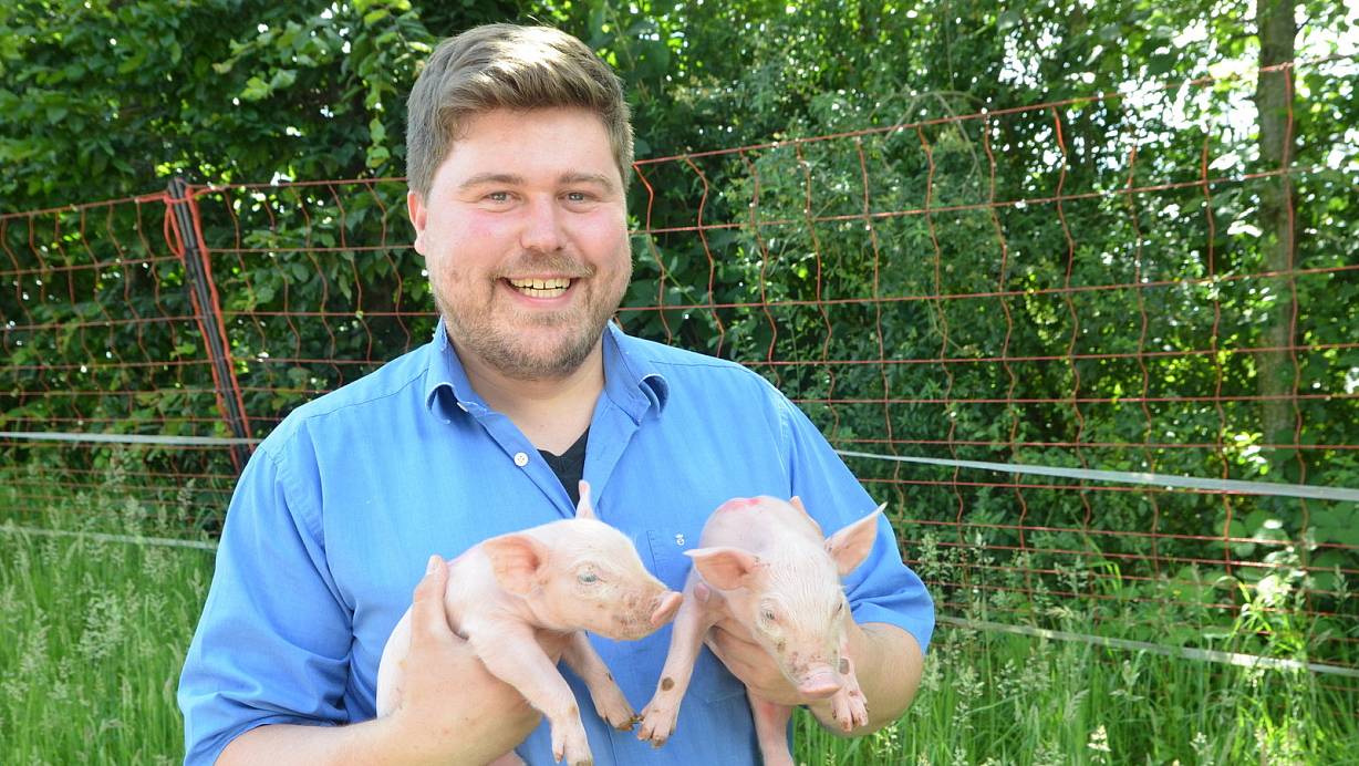 Direkt neben Ringo ist eine Jungsau untergebracht. Wenn die Sau rauschig ist, dann sorgt Ringo für den Nachwuchs. Die Tragzeit dauere ziemlich genau drei Monate, drei Wochen und drei Tage. Beim Abferkeln bleiben die Ferkel mindestens siebeneinhalb Wochen bei der Mutter. Zehn Wochen alt sind die Ferkel, wenn sie verkauft werden. Konventionelle Betriebe nehmen die Kleinen der Mutter schon nach vier Wochen weg.