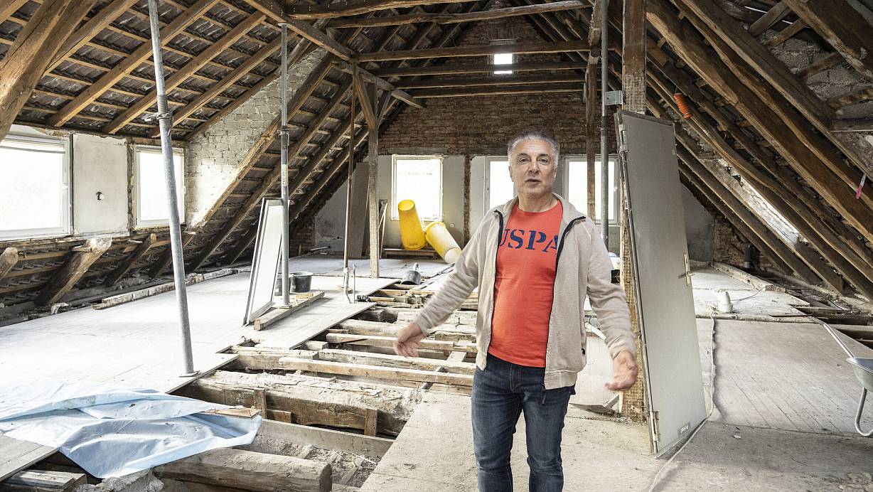 Gastronom und Investor Mehmet Ari, der unter anderem das Outside in Werther betreibt, hat Obergeschoss und Dachboden komplett entkernt. Hier sollen acht 20 Quadratmeter große Zimmer entstehen. | © Jörg Dieckmann