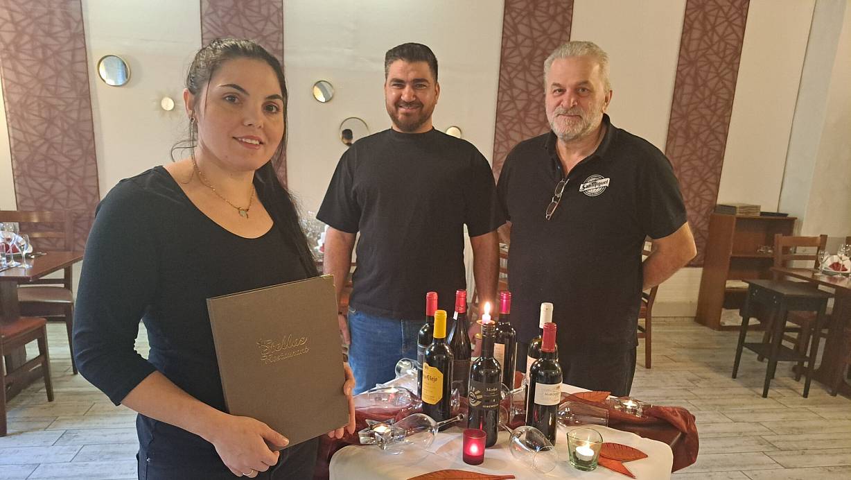 Im Februar 2024 hatte Stella Apostoledis (v. l.) mit ihrem Mann Tasios Evagelos das Almani übernommen und ihm ihren Namen gegeben. Almani-Wirt Theo Ioannidis sprang nun ein, als das Restaurant in Schieflage kam. | © Silke Derkum-Homburg