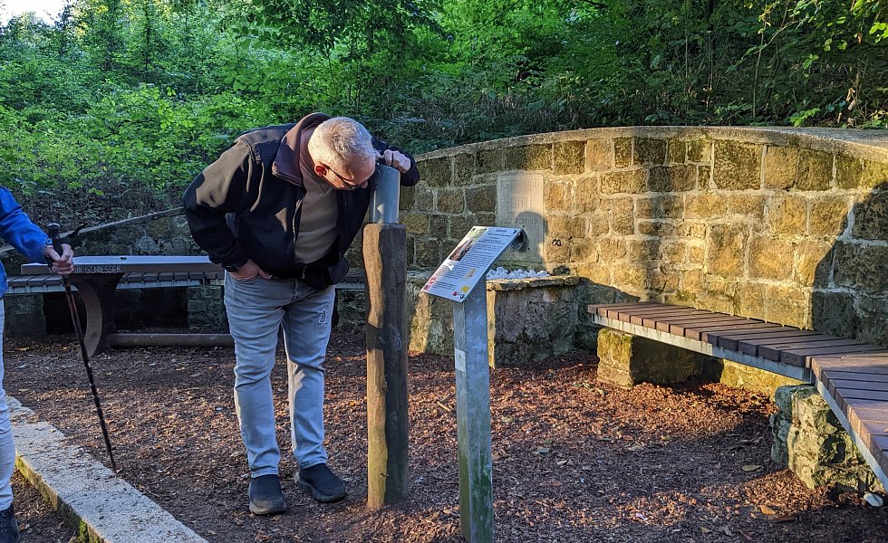 Wir wandern an der Arminius-Quelle vorbei. Die ist ausgetrocknet, vielleicht ein Grund, warum kaum jemand stehen bleibt.