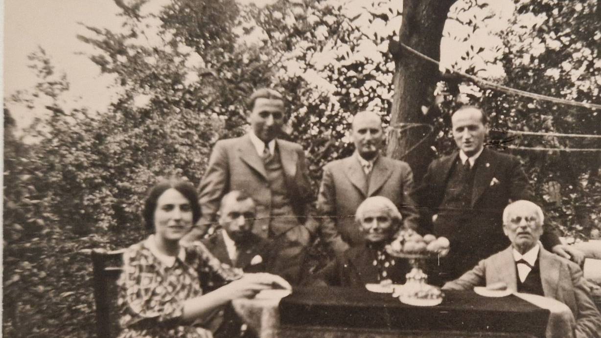 Als die Welt noch in Ordnung schien: Familie Sachs 1933 in ihrem Garten an der Alten Bielefelder Straße. Untere Reihe, von links: Johanna Sachs, Max Sachs, Mutter Friederike Sachs, Vater Feodor Sachs; obere Reihe von links: Artur Sachs, Ludwig Sachs und Julius Sachs. | © Arbeitskreis Spuren jüdischen Lebens in Werther