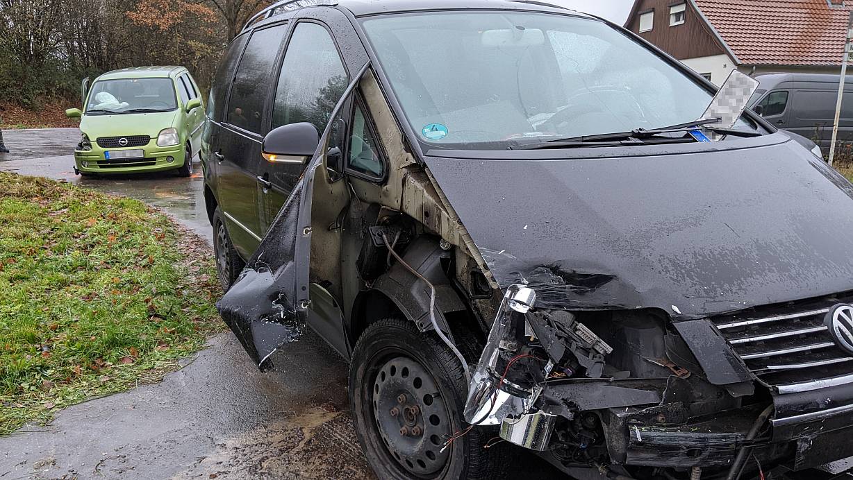 Der Fahrer des Opel Agila (hinten) übersah auf den Jöllenbecker Straße den entgegenkommenden VW Sharan, die Fahrzeuge kollidierten frontal. | © Anja Hanneforth