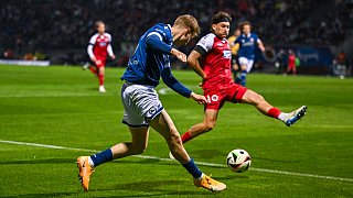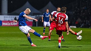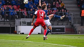 13.04.2025, Fussball, Bundesliga, 33. Spieltag Saison 2024/2025, FC Viktoria Köln - DSC Arminia Bielefeld, Mael Corboz (DSC Arminia Bielefeld) erzielt das Tor zum 0:1, Foto: Teresa Kroeger