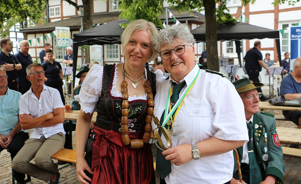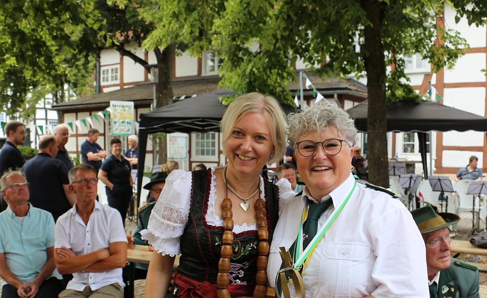 Die Bierköniginnen unter sich: Michaela Lange-Venther vom Schießverein Knetterhausen und Caterine Kisker-Aßner sind beide Bierköniginnen.