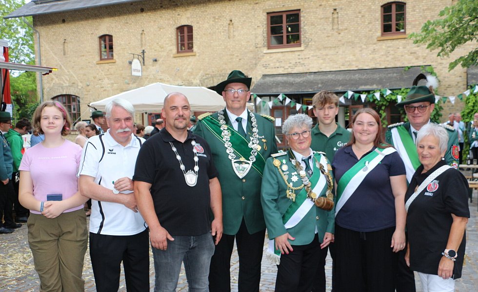 Neu auf dem Schützen-Trohn (v.l.): Anja Kisker, Frank Haman, Uwe Deppermann, Ulrike Deppermann, Christoph Hagenbrock, Klaus Pölterspeck, Cheyenne Pahl, Carsten Pahl, Caterine Kisker Aßner, Jens Aßner, Michael Bauter