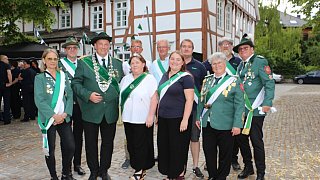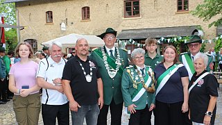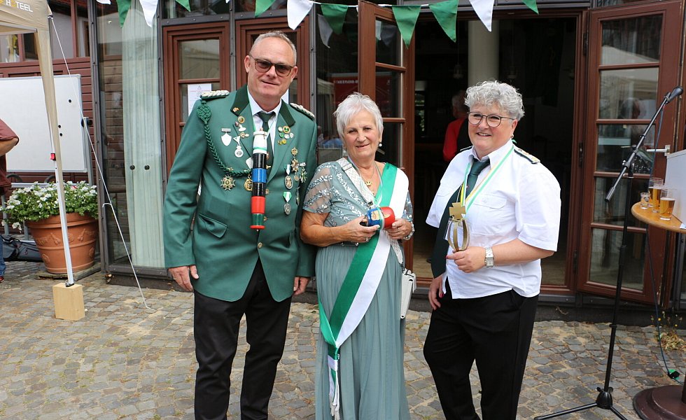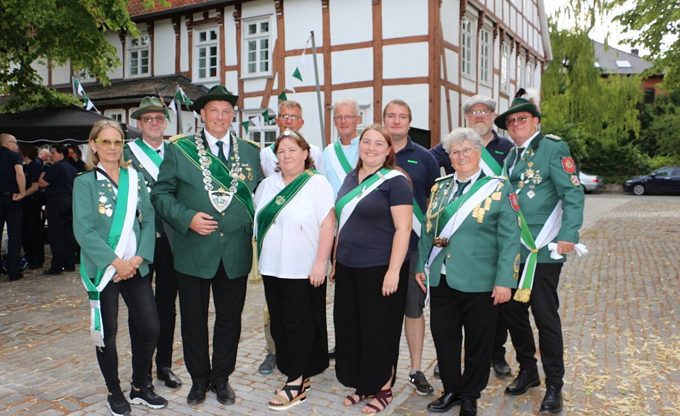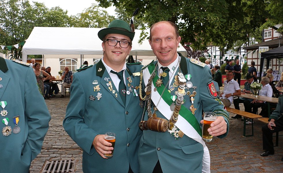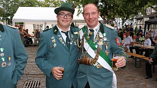 Mit dabei ist auch Bürgermeister Thomas Tappe (links). Er hatte nicht so viel Glück beim Adlerschießen wie Johannes Bismeyer.