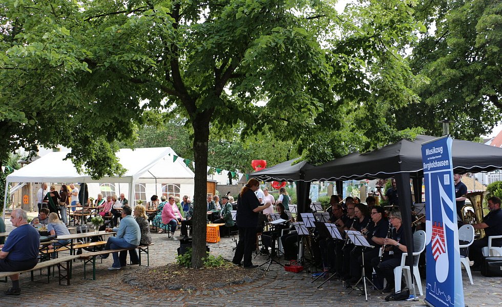 Der Musikzug Borholzhausen sorgte für gute Stimmung auf dem Haller Schützenfest am Bürgerzentrum Remise.