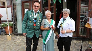 Zepter, Apfel und Krone: Jens Aßner, Bärbel Venohr und Caterine Kisker-Aßner sind die glücklichen Schützen, die die Insignien getroffen haben.