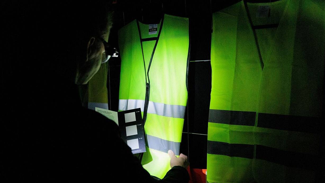 So geht ein Lichttest mit einer Taschenlampe: Diese hält man direkt neben das Auge und leuchtet aus drei Metern Entfernung auf die Weste. Gute Modelle reflektieren das Licht strahlend weiß. Ein mangelhaftes Model dürfte dagegen kaum heller werden als ein Blatt Papier.