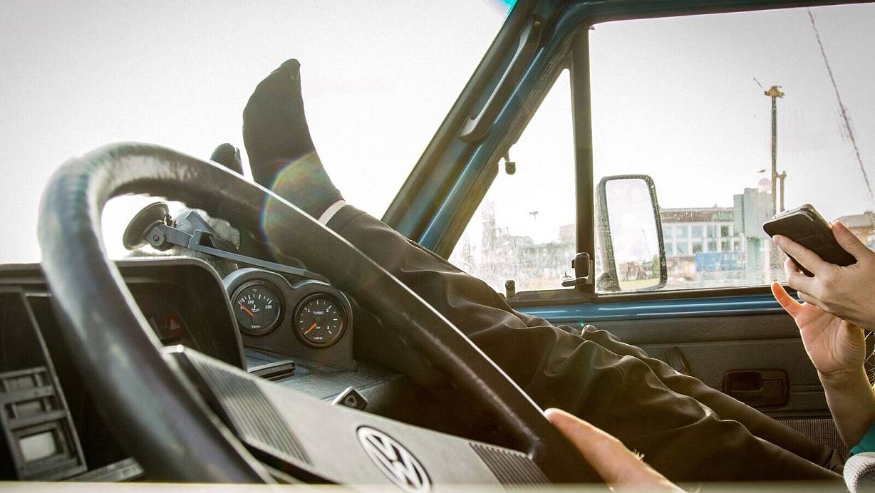 Kann schön entspannt als Beifahrer sein – rausgucken, dösen oder einfach auf das Handy schauen. Seit es Navis gibt, fällt auch das Kartenlesen weg. Doch die Füße hochlegen im Wortsinn sollte man besser nicht. Wer etwa bei großer Hitze die Füße aus dem offenen Fenster streckt, riskiert Verletzungen bei einem seitlichen Aufprall oder durch äußere Einflüsse. Außerdem sorgt diese Sitzposition dafür, dass der Gurt nicht mehr richtig schützen kann.