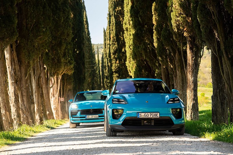 Wie das im Alltag aussehen kann, zeigt ein Vergleich mit zwei nahezu identischen Porsche Macan, einem V6-Benziner mit 279 kW/380 PS und dem neuen E-Modell mit 300 kW/408 PS und einem Preisunterschied von 4.500 Euro zugunsten des Benziners, die auf einer simulierten Urlaubsreise im Konvoi von Stuttgart nach Siena in der Toskana gefahren sind.