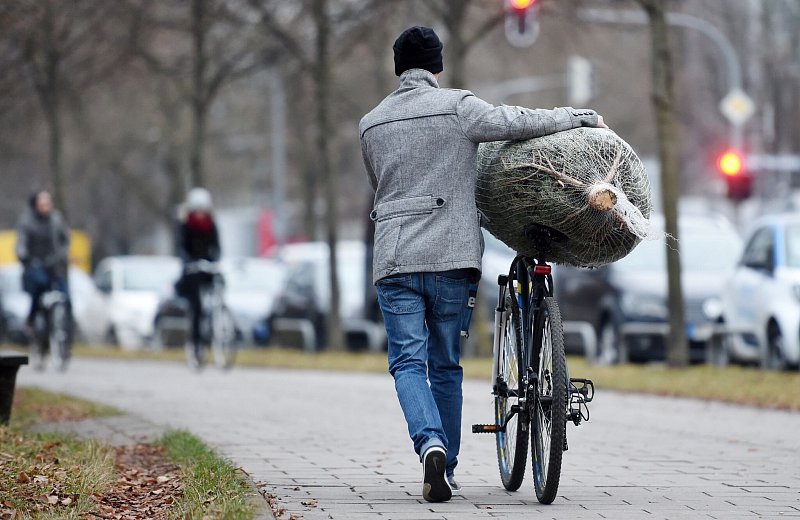 Die beste Variante laut Pressedienst-Fahrrad (pd-f) ist das Schieben. Dafür legt man den vom Händler bestenfalls in ein Netz verpackten Baum der Länge nach über Lenker und Sattel und schiebt die weihnachtliche Fuhre heim. Grundsätzlich müssen - selbst beim Schieben - die Bäumchen auch auf dem Rad rutschsicher verstaut sein.