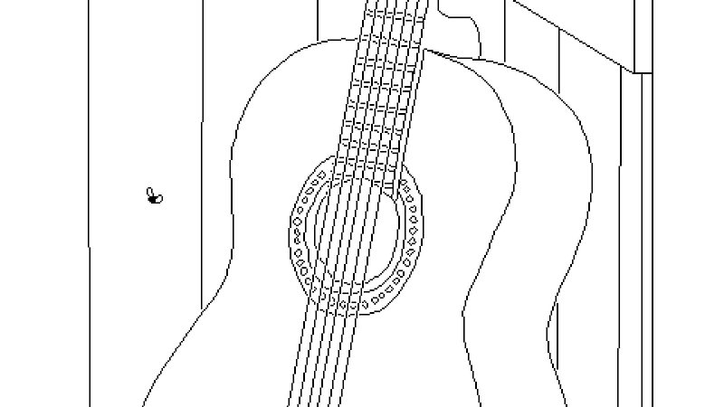 Mit dieser Zeit startet man dann in das sehr reduziert gestaltete erste Level. Das Spiel ist in 2D und schwarz-weiß. Alles sieht aus, wie im Microsoft-Programm Paint gemalt. Und in der Mitte des Bildschirms: Ein schwarzer Punkt mit Beinchen und Flügelchen, der auf dem Parkett einer Wohnung sitzt.