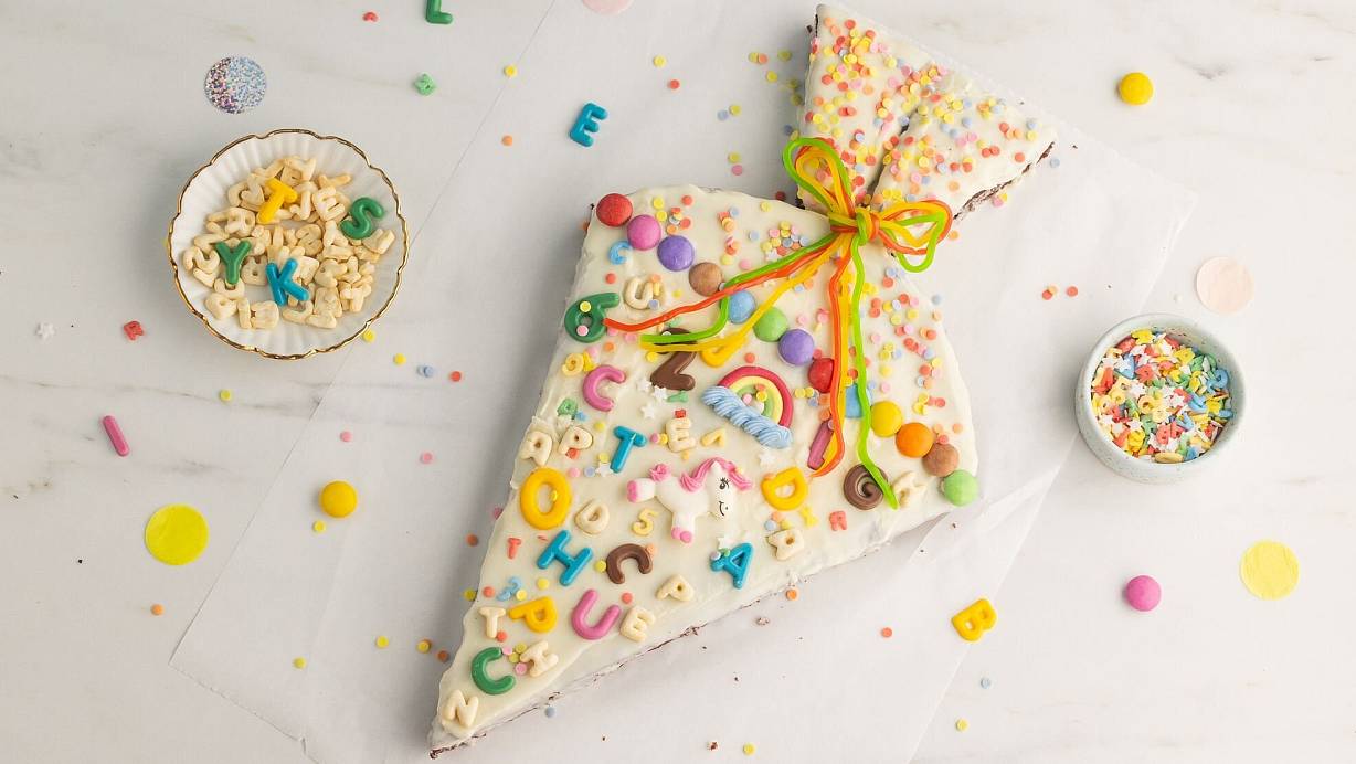 Wichtig: Den Schultütenkuchen vorher auskühlen lassen, die Marmelade mit einem Pinsel auftragen, dann erkalten lassen. Wählen Sie eine Fettglasur, keine Kuvertüre. «Die muss man nicht temperieren, nur aufwärmen und überziehen, dann wird sie fest», sagt Schenk. Solange die Schokolade noch feucht ist, kann die Deko hinzugefügt werden.