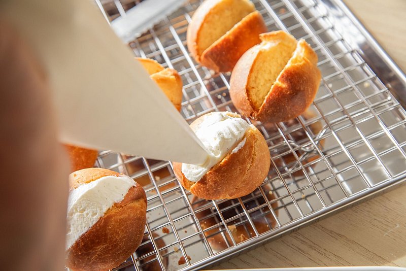 Autorin Friederike Ostermeyer und Fotografin Christin Klose haben sich an die Rezepte der Tessiner Sterneköche herangetraut. Sie haben eine gefüllte Zwiebel von Piero Roncoroni sowie sahnegefüllte Milchbrötchen namens Maritozzo Romanovon von Marco Campanella nachgekocht beziehungsweise nachgebacken. Und so geht's: