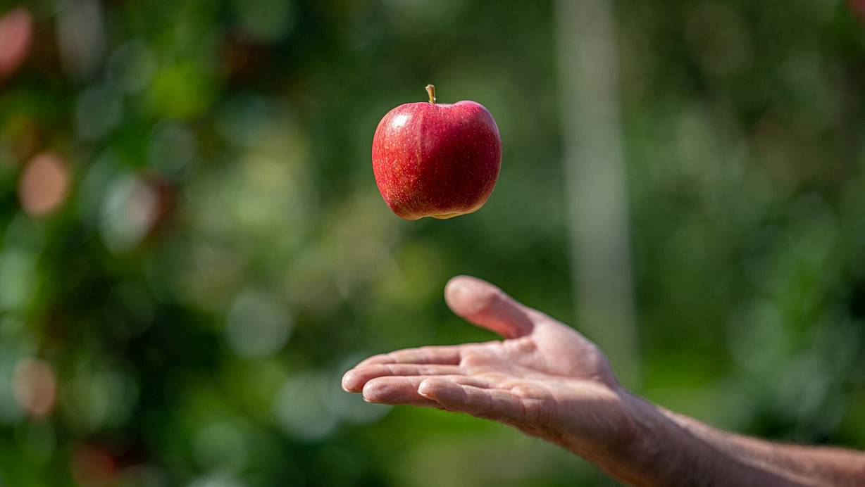 Anhand der Färbung der Schale oder der Kerne lässt sich nur bedingt ablesen, ob Äpfel wirklich reif sind. Stattdessen kann man es mit der sogenannten Kipp-Probe herausfinden. Und so geht's: den Apfel am Zweig um bis zu 90 Grad nach oben biegen. Wenn sich die Frucht mitsamt Stiel einfach vom Zweig löst, ist sie reif. Bleibt der Stiel stattdessen hängen, ist es noch zu früh für die Ernte.