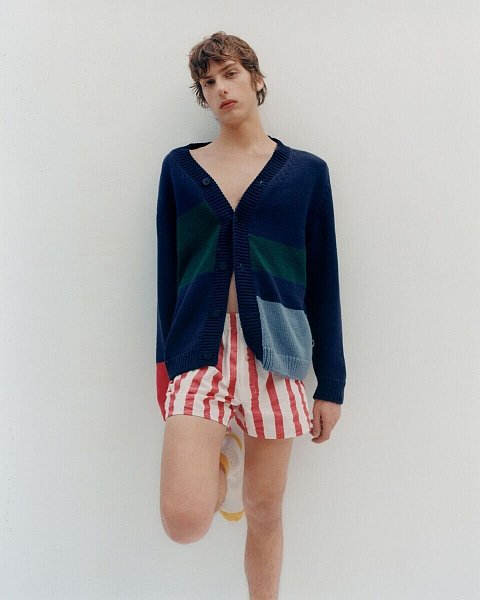 Aber auch Cardigans sind jetzt ein absolutes Muss. «Allerdings ist es nicht ganz Opas Lieblingsstück, das einfach recycelt wird», so Blasberg und rät zu diesem Styling: «Der Layering-Look mit leuchtenden Farben, Logos und Mustern sorgt für ein modernes Update. Kein Mann kommt dieses Jahr ohne seinen Cardigan aus».