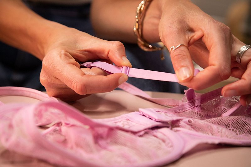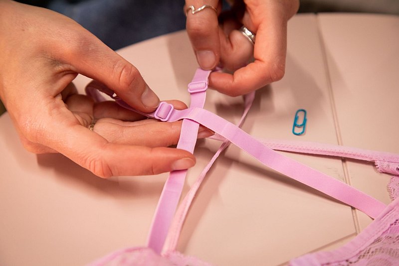 Und so geht's: Die beiden BH-Träger lockern – sie müssen für den Hack länger sein. Die Träger in der Mitte vom BH durch die Büroklammer ziehen. Es entsteht ein Kreuzmuster.