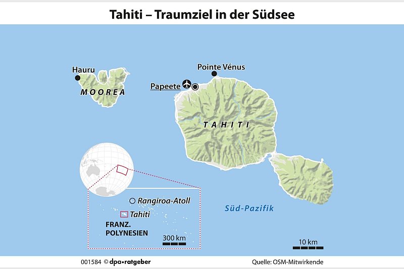 Reiseziel: Tahiti mit der Hauptstadt Papeete ist die Hauptinsel des französischen Überseegebietes Französisch-Polynesien. Es liegt im südlichen Pazifik.