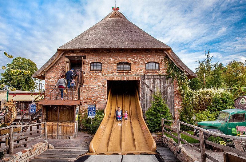 Er ist einer der Parks mit kurzen Wegen und klarem Fokus auf Familien: Der Schwaben-Park zwischen Aalen und Stuttgart liegt idyllisch in einer ländlichen Gegend. Quasi passend dazu öffnet diese Saison ein neuer Spielplatz namens «Hofgaudi» im Bauernhofstil. Highlight: ein Spiel-Mähdrescher gegenüber dem Spielplatz – das markante, rote Schneidwerk vorn ist hier ein Kriechtunnel für die Kleinen.