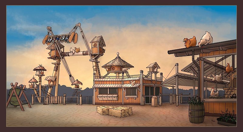 Nahe Landshut wartet der Bayern-Park mit Achterbahnen, Karussells, Wildwasser-Rafting und den nach eigenen Angaben höchsten Freifallturm Süddeutschlands. Neu dazu kommt dieses Jahr eine Großschaukel im Stil eines Hühnerstalls. Die «HehnaHuthschn» richtet sich an Familien, Dreijährige dürfen schon einsteigen. Sie füge sich harmonisch in den Park ein, heißt es: gleich neben der «Bulldogfahrt» und dem «Hoftierrennen». Na dann, Gack, Gack!