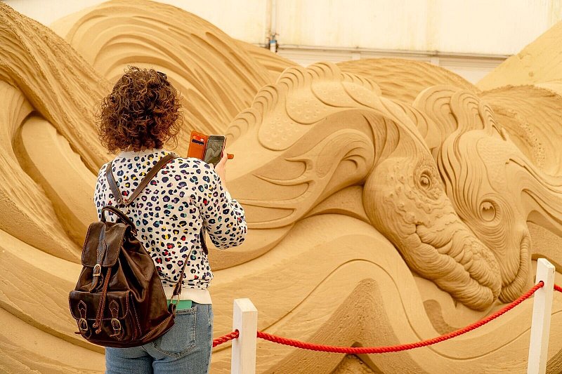 Der Name Sand City lässt es schon ahnen: Die Ausstellung im Lagoa in der Algarve im Süden Portugals ist groß – mehr als 120 Skulpturen erstrecken sich über eine Fläche von mehr als fünf Hektar. Dorthin führen Wege aus Sand. Wer nicht alles erlaufen möchte, kann sich ein elektrisches Golfmobil ausleihen und die Kunstwerke abfahren.
