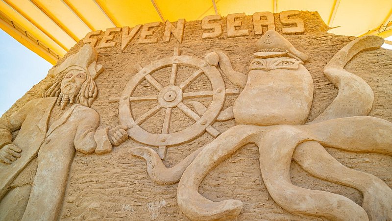 Die Sandfigur des eigenwilligen «Fluch der Karibik»-Helden ist dabei in guter Gesellschaft: Auch Sindbad, der Seefahrer und Meeresgott Poseidon wurden für die 15. Auflage der Warnemünder Sandwelt von künstlerischen Händen mit Schaufeln, Spachteln, Pinseln und Messern geschaffen.