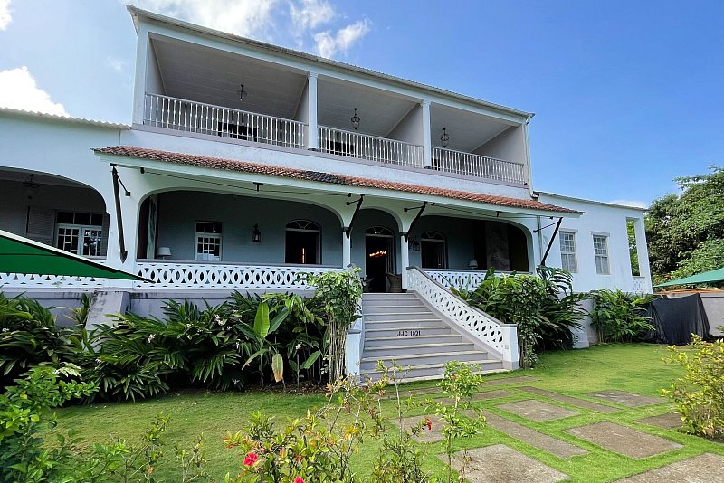 Das auf einer Anhöhe liegende Anwesen ist umgeben von Regenwald, in dem der Kakao, aber auch Mangos, Bananen und Papayas wachsen, die man morgens beim Frühstück mit Blick auf die Küste genießt.