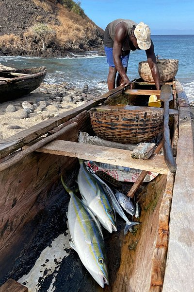Heute steuert Argentino das Boot aber Richtung Süden in die Agulhas-Bucht mit ihrer mystische Felsnadel Pico Papagaio und dem imposanten Tafelberg. Zivilisation gibt hier im Süden keine mehr. In dieser Natur fast alleine unterwegs zu sein, das ist der große Luxus der Insel. Hier betreibt auch Claudio Corallo eine seiner Kakaoplantagen. Beim Blick auf die Bucht erinnere ich mich an seine Schokolade. Sie ist pur, anders. Sie überrascht und macht süchtig – ganz wie die Inseln von São Tomé und Príncipe.