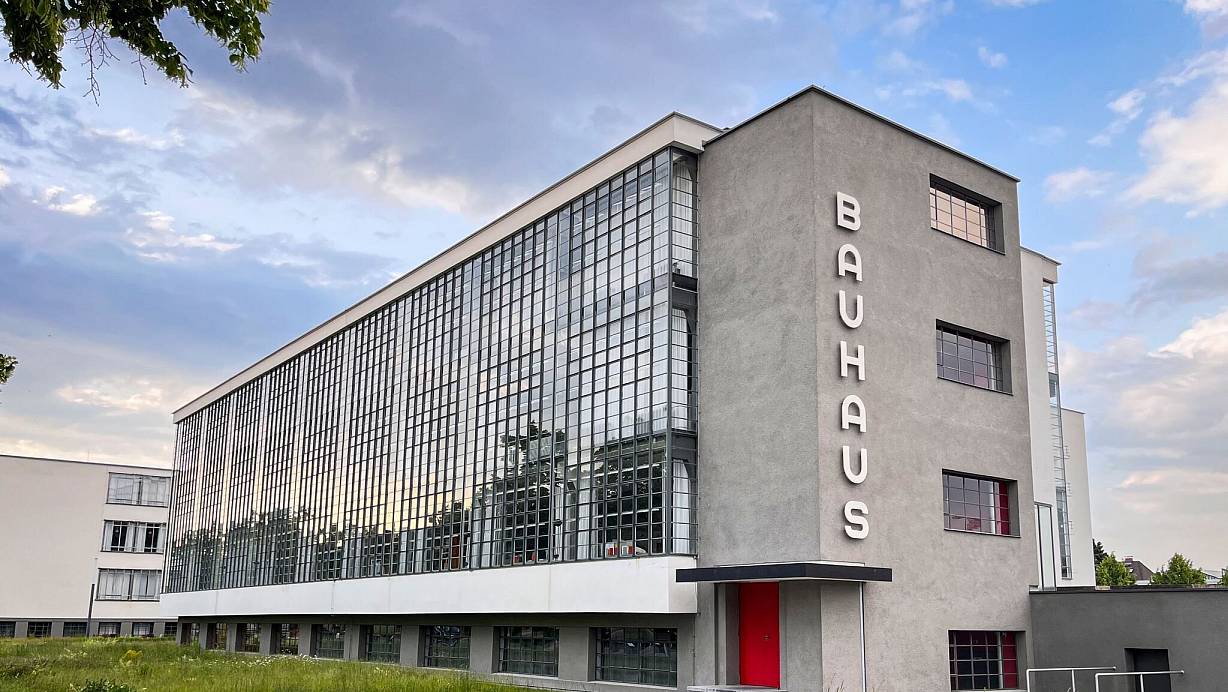 Da steht es vor uns: das berühmte Bauhausgebäude in Dessau - mit dem weltbekannten Schriftzug und der vollverglasten Fassade. Beides war an Bauwerken völlig neu vor hundert Jahren, als das Bauhaus von Weimar nach Dessau zog.