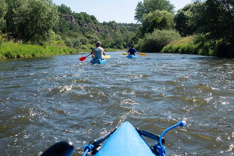 Recht hat er, der Profi. Die Berounka eignet sich nicht für jene, die im Kanu Kicks wie Stromschnellen suchen. Ruhig zieht sie sich durch Hügelwelten im westlichen Mittelböhmen. Wer auf eine mehrtägige Tour geht, lässt sich auf die (Wieder-)Entdeckung der Langsamkeit ein. Ein Plus für Anfänger oder jene, die es relaxed mögen.