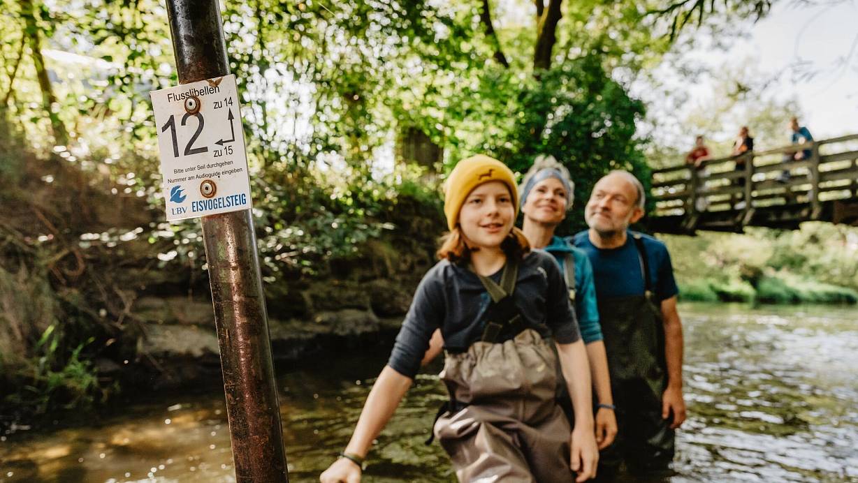 Der Eisvogelsteig, der sich an der Umweltstation Nößwartling befindet, ist laut Tourismusverband Ostbayern ein bundesweit einmaliges Angebot. Hier können Gäste eine Führung buchen oder sich über den Audioguide informieren lassen - etwa über Flusslibellen, die Flüsse mit Sand- und Kiesbänken sowie viele Pflanzen und krautige Ufern brauchen. Derart vielgestaltige Flüsse sind in Mitteleuropa selten geworden, lernen wir zum Beispiel.