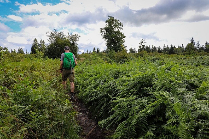 Wir sind im Hohen Venn, mit einer Fläche von mehr als 7.200 Fußballfeldern ist es eines der größten zusammenhängenden Hochmoore in Europa. Die Hochebene, wo das Wetter auch außerhalb der eigentlich dafür vorgesehenen Jahreszeit oft herbstlich rau ist, ist grenzübergreifend und erstreckt sich bis ins linksrheinische Deutschland.