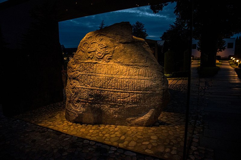 Es war einmal ein Wikingerkönig. Er betete zu Thor, Odin oder Freya und herrschte im Jahr 950 über ein Land, das noch keinen offiziellen Namen trug. Weil er nicht nur einflussreich, sondern auch ideenreich war, gab er einen Stein in Auftrag, der fortan sein Machtzentrum in Jelling schmücken sollte.