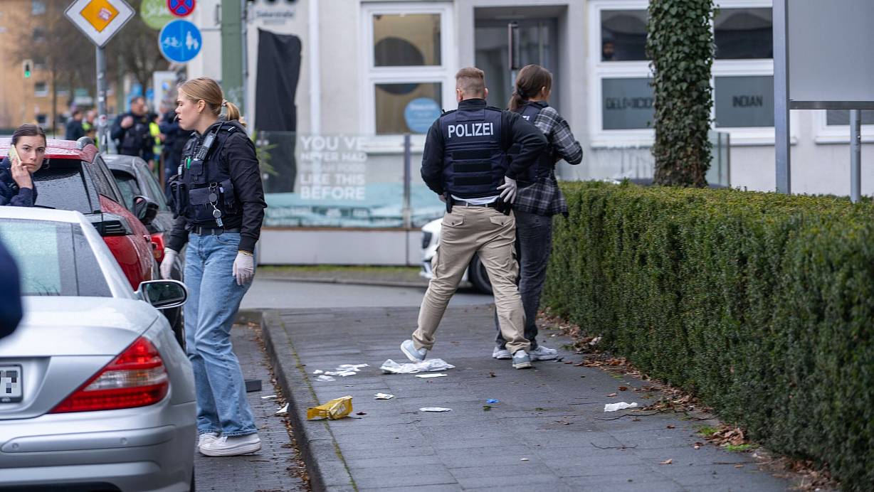Kripo-Beamte und Polizisten stehen am Tatort. Hier wurden vier Angehörige von Hüseyin A. niedergeschossen und zum Teil lebensgefährlich verletzt. | © Christian Mathiesen
