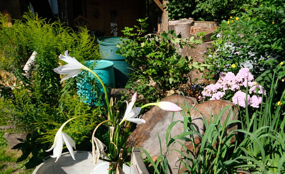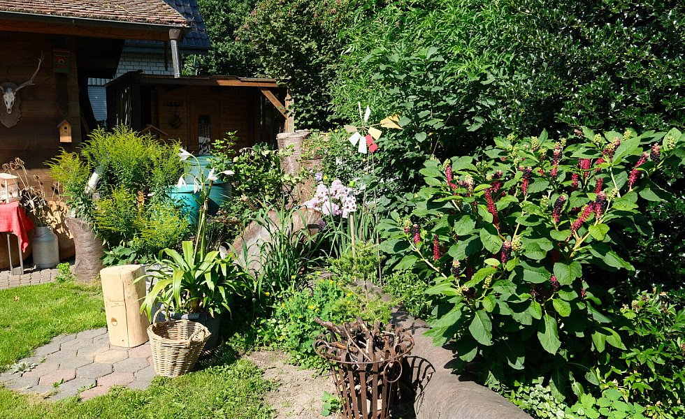 Natürlich steckt in dem Garten immer noch enorm viel Arbeit. „Irgendwo sind immer Baustelle“, sagt Lore Halstenberg. Aber dennoch geht das Ehepaar die Gartenarbeit entspannt an: „Bei uns darf wachsen, was wachsen möchte, wenn es zu üppig wird, wird zurückgeschnitten oder auch mal herausgerissen.“