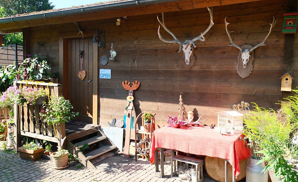 Und noch etwas fällt ins Auge: eine stattliche Jagdhütte. „Die stammt aus Österreich und hat einige Jahr im Kreis Höxter in einem Jagdrevier gestanden“, erzählt Dieter Halstenberg, der selbst Jäger ist. Nach einem Jagdpächterwechsel sollte die Hütte abgerissen werden, doch Dieter Halstenberg hatte eine andere Idee: „Mit Hilfe von ganz vielen Freunden haben wir die Hütte in Höxter abgebaut und bei uns im Garten wieder aufgebaut.“ Dafür hat Dieter Halstenberg selbstverständlich vorher eine Baugenehmigung eingeholt. Und nun haben die Halstenberg auch eine Möglichkeit, ihren Garten in den Wintermonaten ausgiebig zu genießen. Hinter der Hütte steht noch ein kleines Backhaus, auch einen Räucherofen nennen die Halstenbergs ihr Eigen.