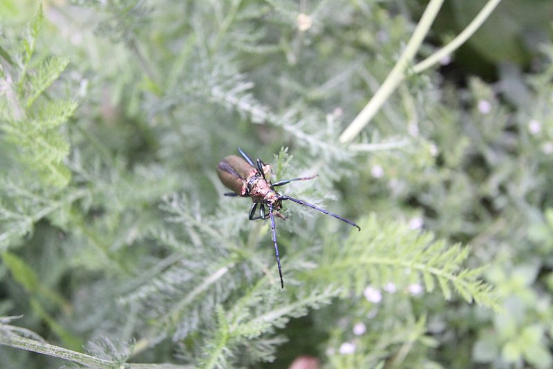 Wer seinen Garten betritt, fühlt sich dort schnell ebenso wohl wie die zahlreichen Tiere, die sich dort tummeln. Zu sehen sind unter anderem Schmetterlinge, Libellen wie die Mosaikjungfer und der Moschusbock, eine Käferart. „Ich versuche, den Garten insektenfreundlich zu gestalten, und lasse zum Beispiel die wilde Malve stehen.“ Auch im Stumpf der Weide am Zaun finden Insekten wie der Weidenbohrer Nahrung.
