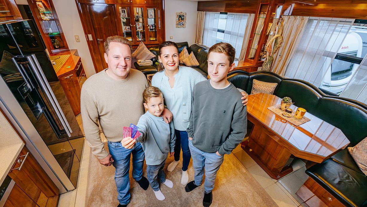 Nadine und Manuel Welte leben während Pollhans mit ihren Kindern Gino (10) und Manuel (15) in einem Luxus-Wohnwagen im Kreis Gütersloh. | © Besim Mazhiqi