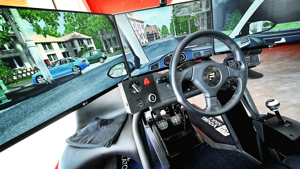 Das Cockpit in einem Fahrsimulator ist ausgestattet, wie das Cockpit in einem modernen PKW. | © Symbolbild: Barbara Franke