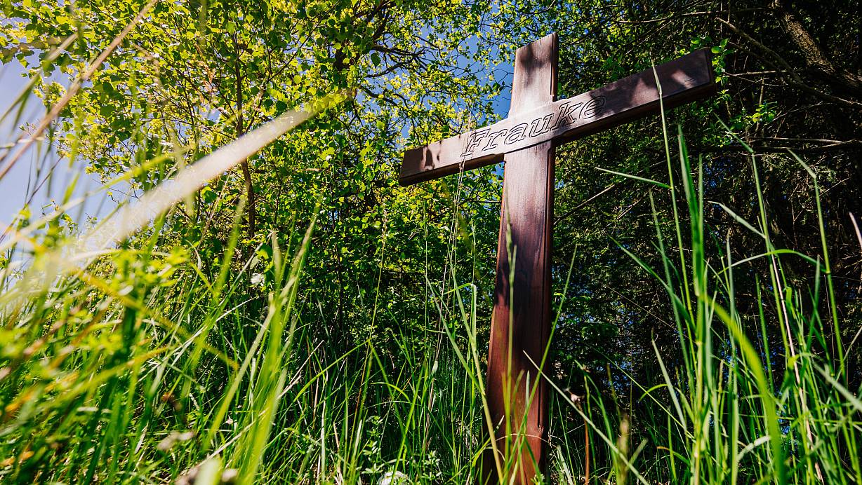 Das Verbrechen an Frauke Liebs ist bis heute ungeklärt, ein Holzkreuz an dem Fundort ihrer Leiche bei Lichtenau erinnert an die junge Frau. | © Besim Mazhiqi