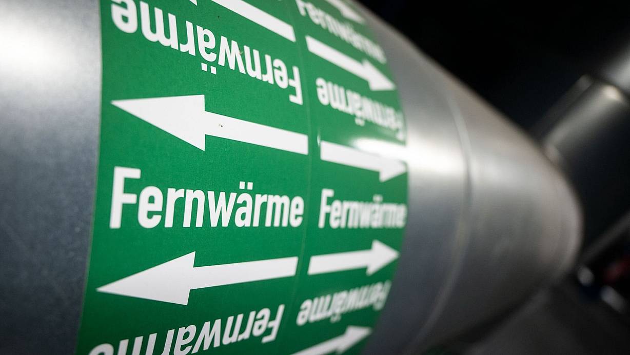 Leitungen sind in der Fernwärmeverteilerstation eines Heizkraftwerks zu sehen. | © Marijan Murat/dpa