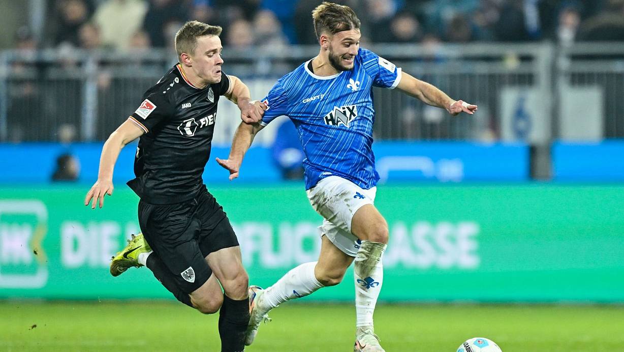 In der Folge hatten die Südhessen zwar mehr Spielanteile, es fehlten gegen sich auf die Defensive konzentrierende Gäste aber zündende Ideen. Einzig «Lilien»-Angreifer Fraser Hornby sorgte Mitte der ersten Halbzeit mit einem Schuss von der Strafraumkante ans rechte Außennetz für echte Torgefahr (24.).