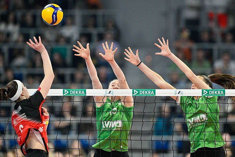 Es war ein Wirkungstreffer, der Münster verunsicherte. Die favorisierten Dresdnerinnen zeigten ihre Klasse im zweiten Satz dagegen von Beginn an und ließen den Gegnerinnen nicht den Hauch einer Chance.
